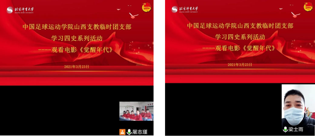 北京体育大学中国足球运动学院山西支教团临时团支部于下午2:30开展“矢志百年、追忆峥嵘”四史学习主题团日活动,中国足球运动学院本科生党支部书记梁士雨、支教团全体成员共同参会。